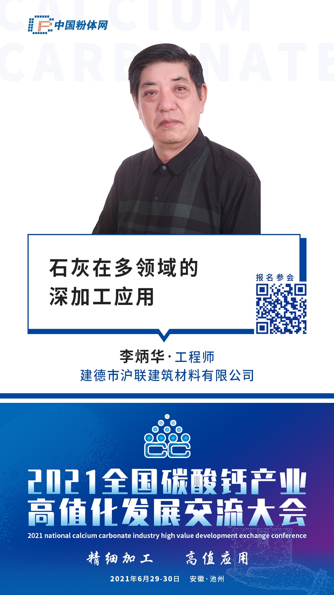 2021??9-30?/strong>,由中国粉体网主办的‛span style="color: rgb(192, 0, 0);">2021全国碳酸钙产业高值化发展交流大会“/strong>将在安徽池州举行,届时来?strong>建德市沪联建筑材料研发中心的李炳华工程师将作《石灰在多领域的深加工应用《/span>报告,围绕石灰石碳酸钙种类的选择、石灰深加工工艺流程、灰钙在腻子粉中的应用、石灰分类用途与发展前景等进行详细阐述、/p>
