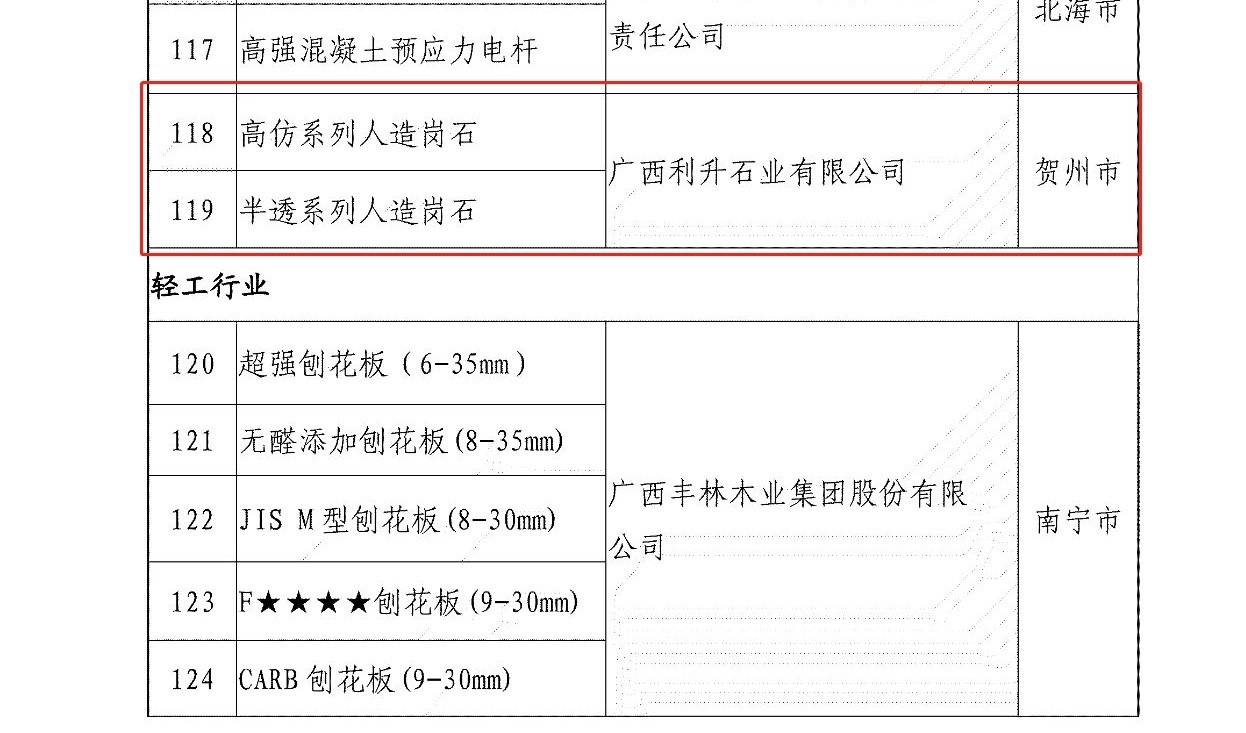 广西利升石业两款岗石产品入选“广西名优工业产品推荐目录“/strong>