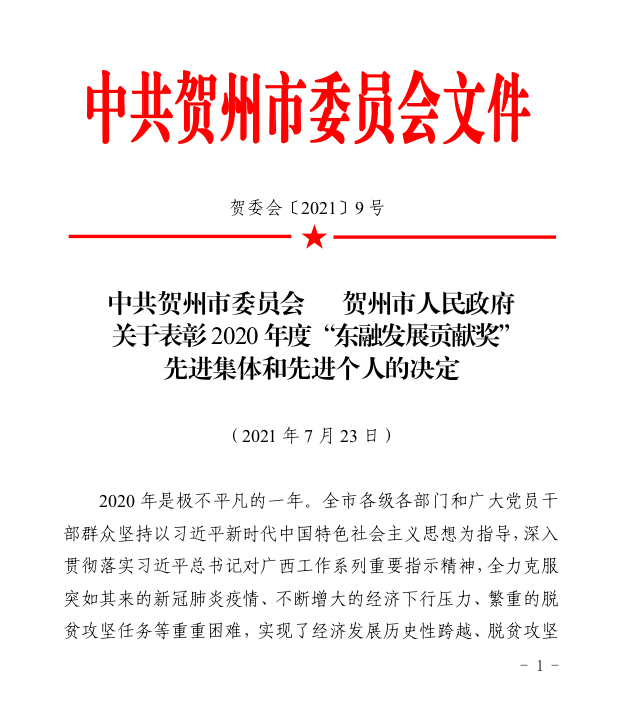 据广西贺州旺高工业区8?日消息,为表彰先进、树立榜样,贺州市市委、市政府?0个获得“东融发展贡献奖”先进集体的单位?00名获得“东融发展贡献奖”先进个人的同志进行表彰、/span>