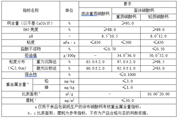 涂布级碳酸钙的技术指标要求(QB/T2811-2019造纸用碳酸钙(/strong>[4]