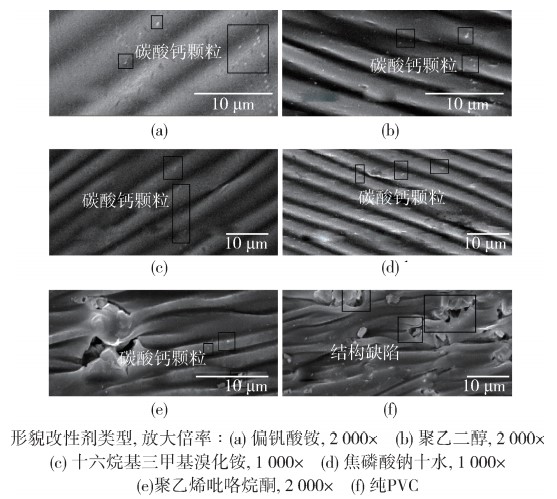 由于PVC薄膜材料力学性能整体较差,在外力作用下易断裂,为提高其力学性能,董栋栋等制备了5种不同形貌碳酸钙颗粒并填充在PVC薄膜材料中,以此探究碳酸钙颗粒形貌对PVC复合材料力学性能的影响、/span>
