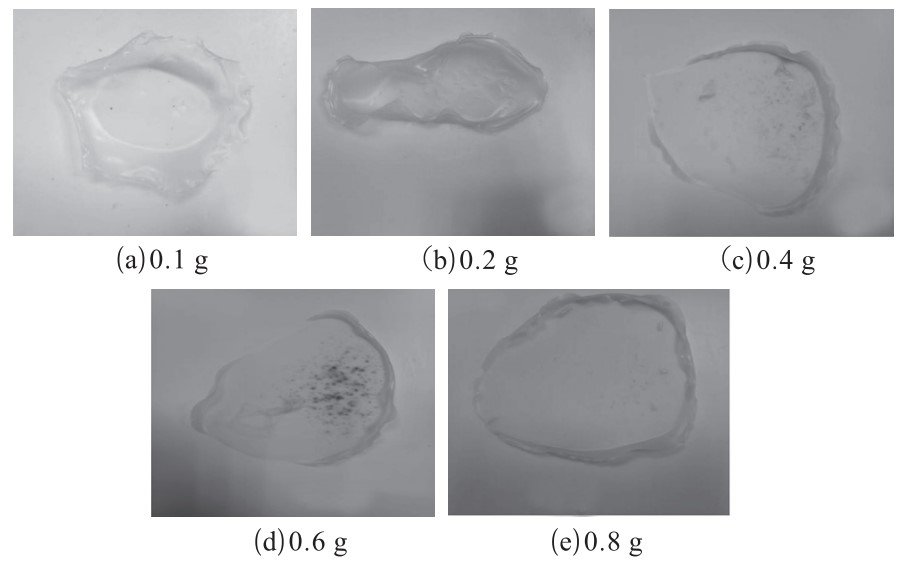 碳酸钙添加量?.2g时对碳酸?淀粉基复合薄膜的力学性能影响最为显著,薄膜的拉伸强度、弹性模量、断裂伸长率均有提高。因此,0.2g碳酸钙为较适的添加量、/span>