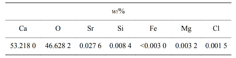 如表1所示,碳酸钙的纯度达到?9.86%,镁、铁质量分数低于0.005%,锰、铝等其他金属元素均没有检测出来、/span>