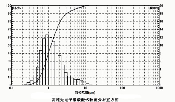 高纯光电子级碳酸钙粒径分布直方图 图片来源:创新世纪光电材斘/span>