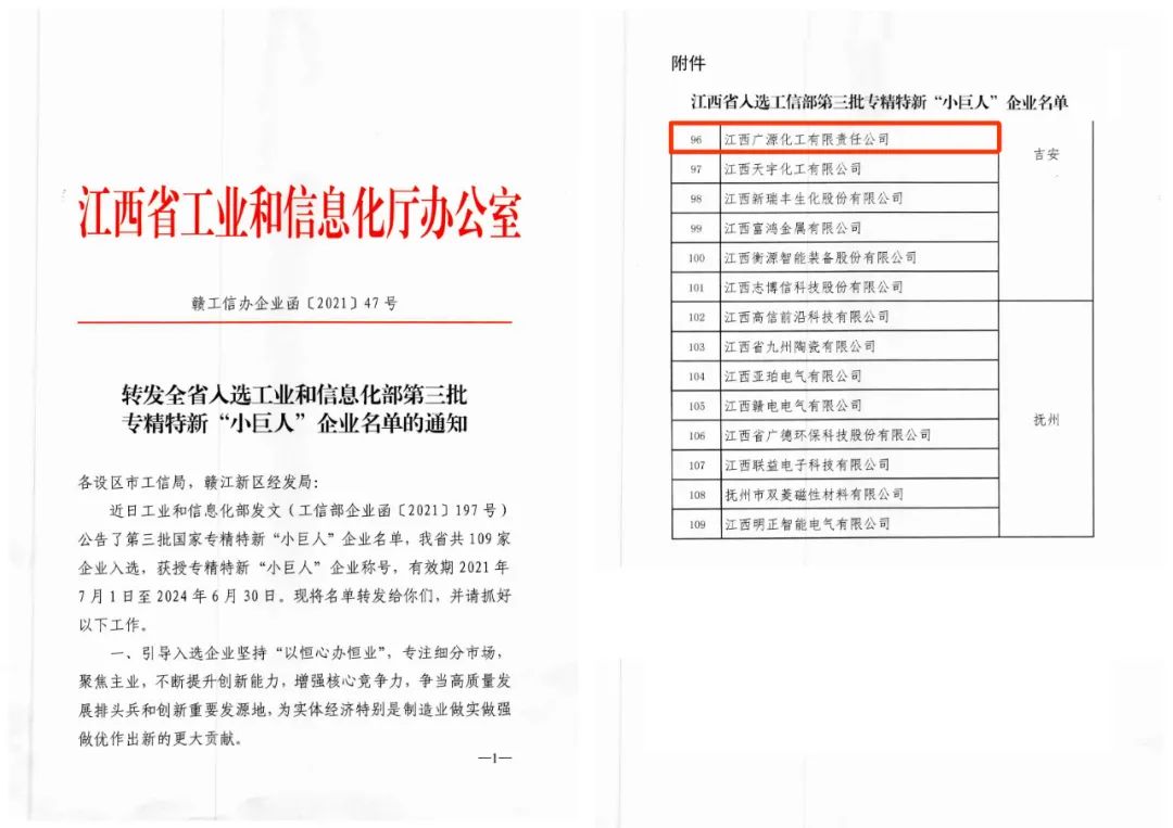 中国粉体网讯近日工业和信息化部发?工信部企业函 2021?97? 公告了第三批国家专精特新“小巨人”企业名单,广源集团成功入选、br style="text-indent: 2em; text-align: left;"/>