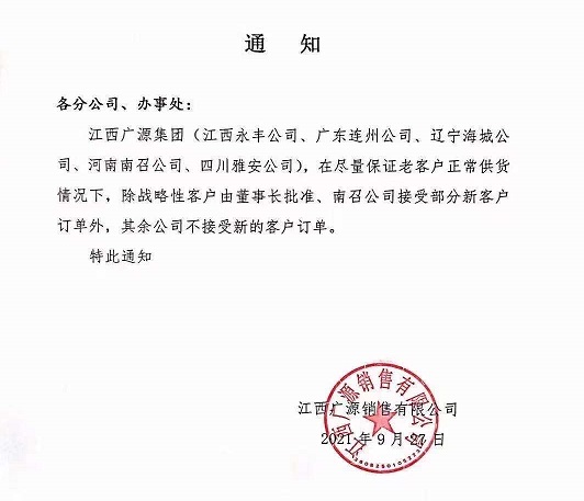 受拉闸限电影响江西广源化工多家分公司减少供货