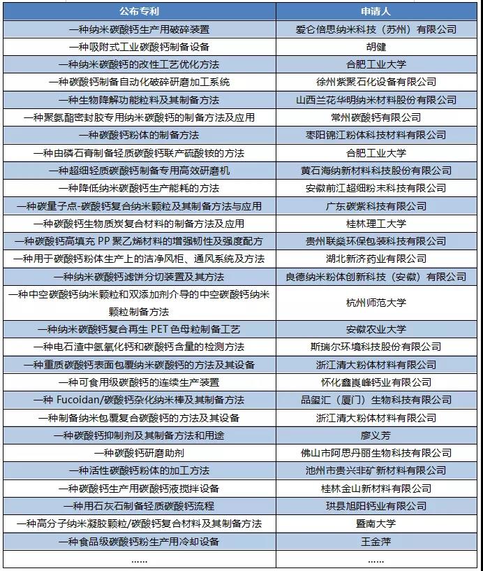 除此之外,还有很多企业、科研机构公布了碳酸钙相关专利、/p>