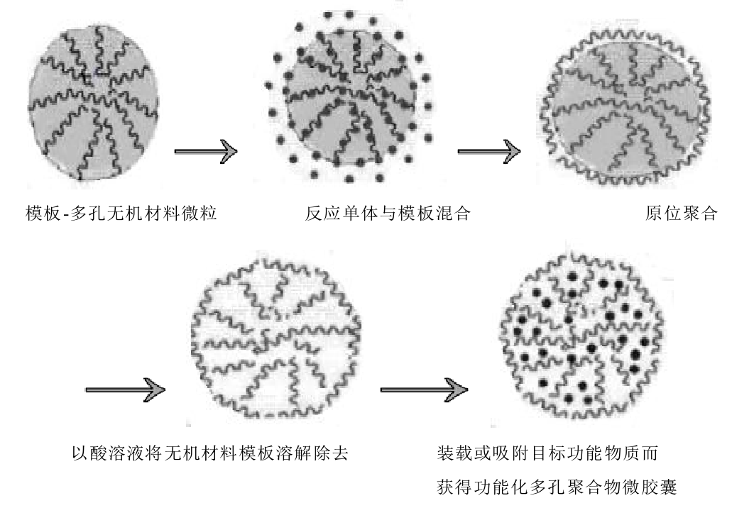 多孔碳酸钙作为一种硬模板剂,使用这种模板剂制出来的高分子吸附剂被称为微胶囊。微胶囊的尺寸和形状由模板决定,囊壁组成及渗透性可由组装材料、层数及外部条件等调控,因而在药物传递、微传感器及微反应器等领域具有广泛的应用前景、/p>