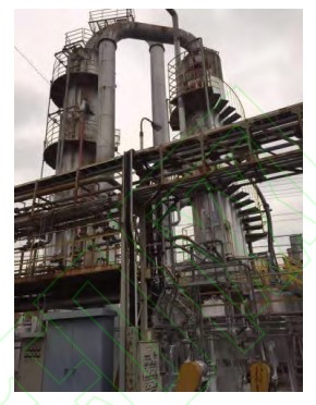 相较于国内,日本白石的连续喷雾碳化工艺已经相对成熟。喷雾碳化塔包含A??5米,直径2.1?和B??8米,直径2.6?,二个塔循环碳化。塔底部通入CO2,浆液用泵从塔底通过管道从顶部喷入,下落入塔底,不断循环,直到中和至pH?停止、/p>
