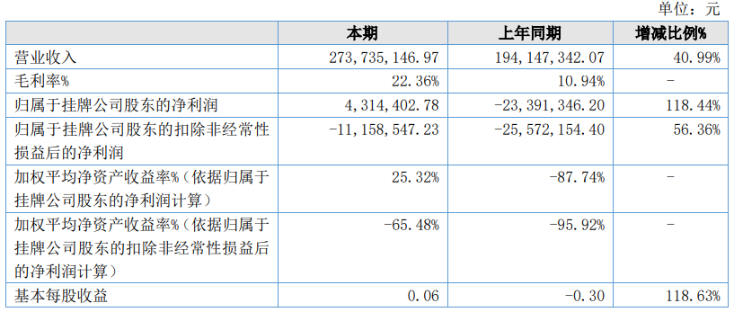 中国粉体网讯4?1日,兰花纳米?39189)发?022年年度报告。报告期内,公司实现营收273?35?46.97元,同比增加40.99%;归属于挂牌公司股东的净利润4?14?02.78元,同比增加118.44%、/span>