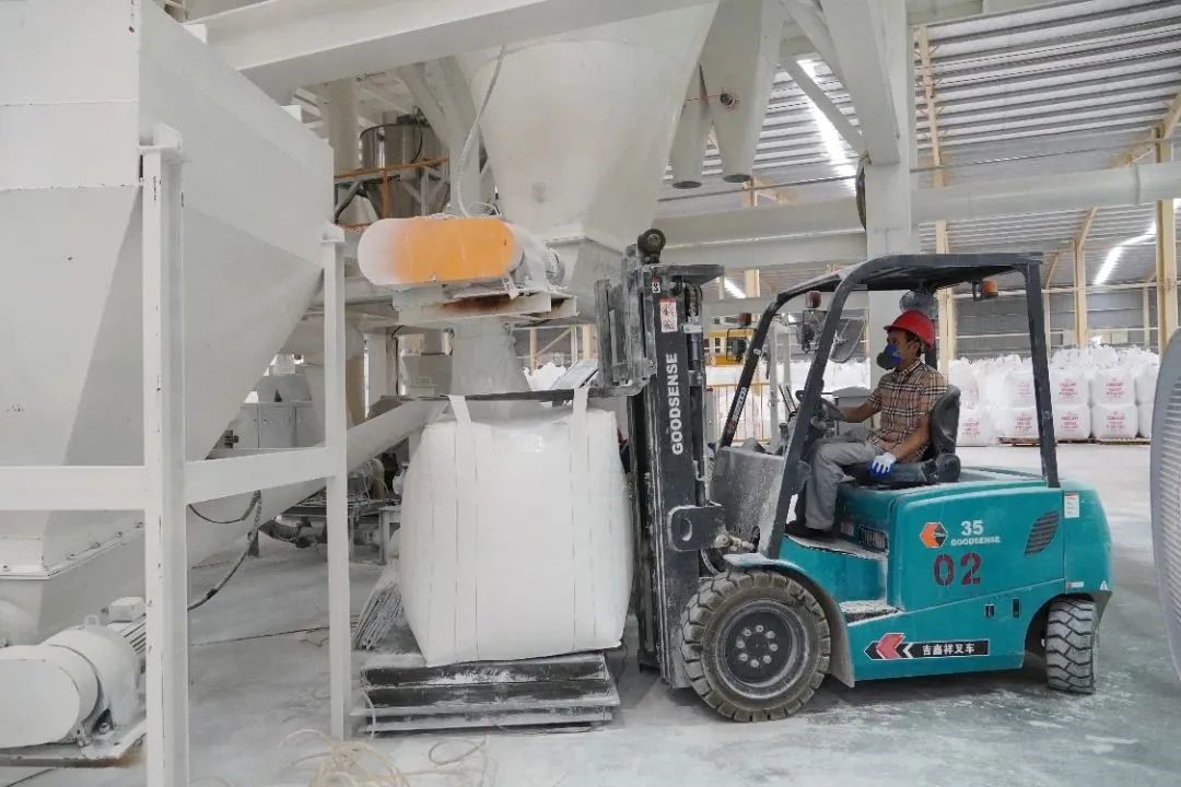 4?7日,在贺州高新区的五全新材料有限公司生产车间内,机器运行的轰鸣声不绝于耳,工人们操作着装卸叉车有条不紊地运输粉体产品,现场一派繁忙的生产景象、/span>
