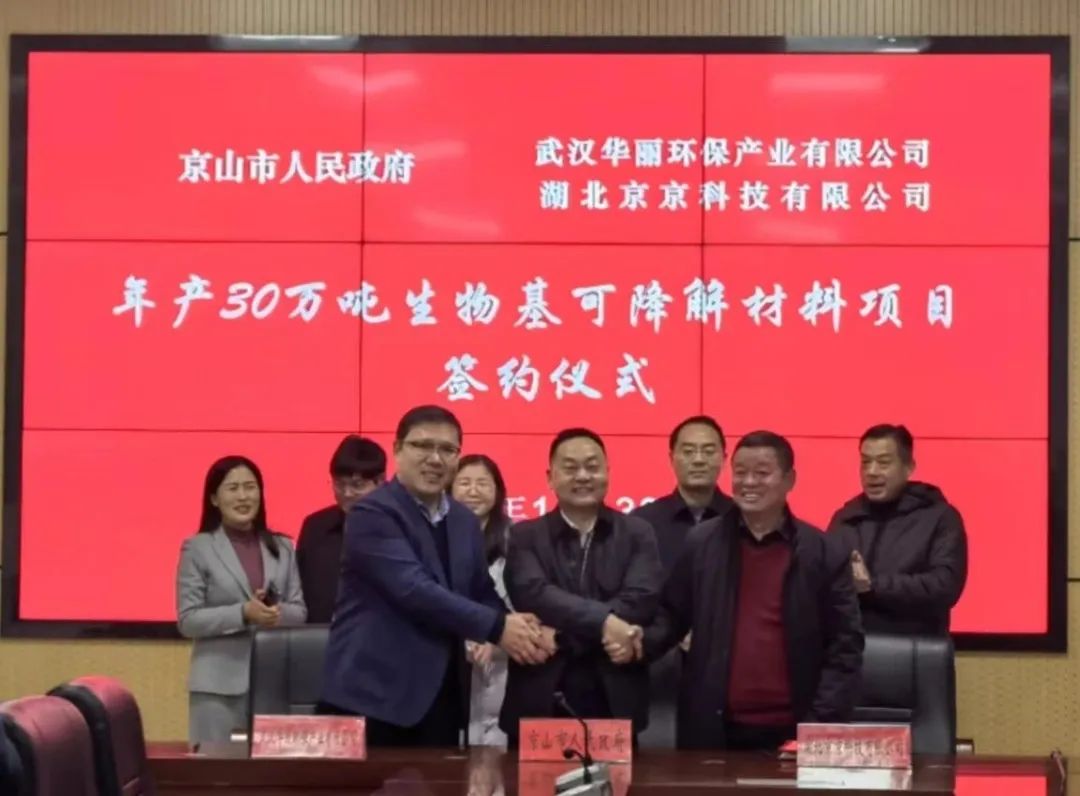 中国粉体网讯11?0日,京山市人民政府与武汉华丽环保产业有限公司、湖北京京科技有限公司举行年产30万吨生物基可降解材料项目签约仪式。京山市市委书记张勇,市委常委、副市长董智勇,副市长曹建国出席仪式并见证签约、/p>