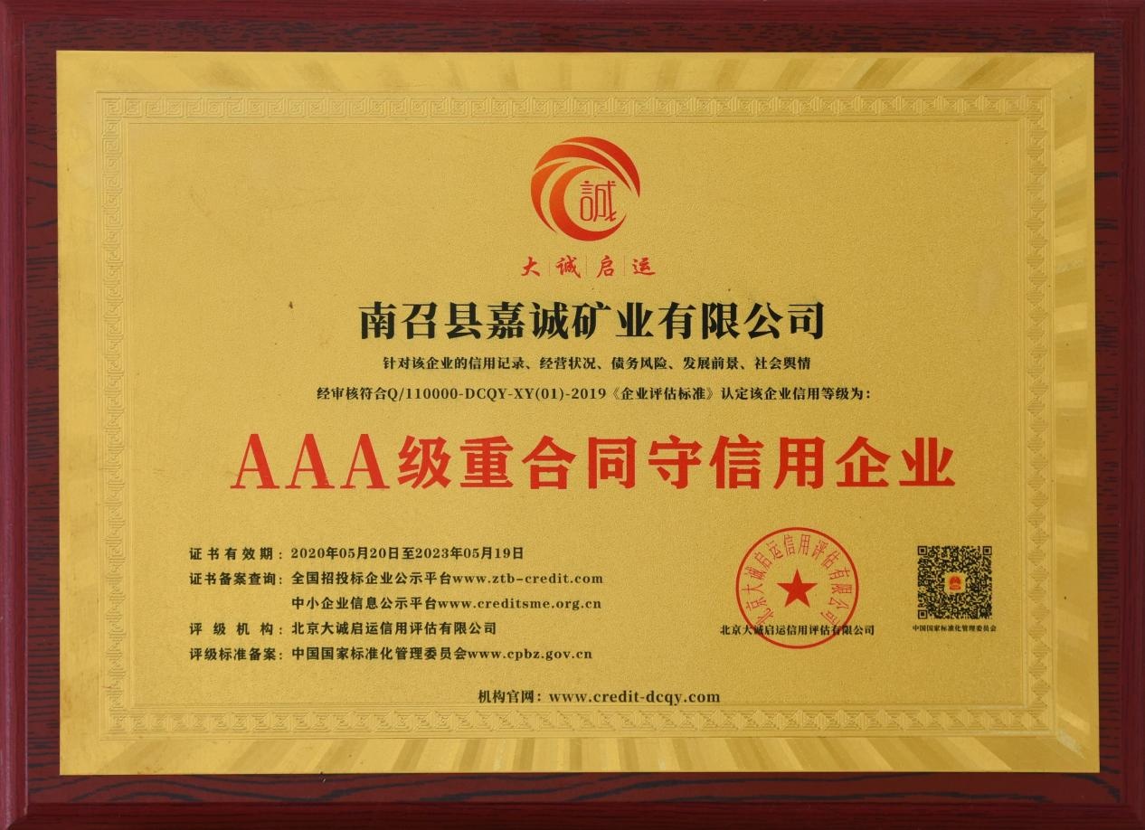 南召县嘉诚矿业有限公司贯彻‘质量一流、品质一致、承诺一定’的经营理念,坚持以市场为导向,以至真至诚的服务宗旨,追求更精更细的品质,全心全意为广大客户服务!!