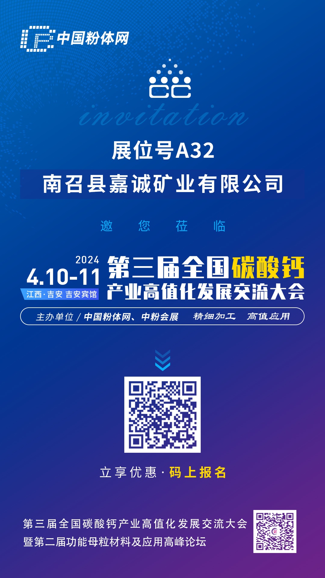 由中国粉体网主办的‛/span>2024第三届全国碳酸钙交流伙/strong>”将亍/span>2024??0-11号在江西吉安举办+/span>南召县嘉诚矿业有限公号/span>邀您一同参加、/span>