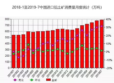 中国粉体网讯据统计,2019?月份中国进口铝土矿消费量约为788万吨,环比增加约1.3%,同比增加约31.3%。今?-7月份,中国进口铝土矿消费量累计约5,000万吨,较去年同期提升?4.5%。通过这一系列数据可以看出,国内铝土矿进口量在进一步加大,且在未来,这种趋势会一直延续并迎来国内铝土矿市场结构的转折点、br/>