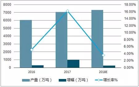 我国2016-2018年氧化铝产量