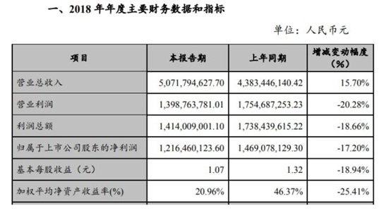 赣锋锂业发布2018年年度报告,实现营业收入50.04亿元,同比增?4.15%;归属于上市公司股东的净利润12.23亿元,同比减?6.73%;归属于上市公司股东的扣除非经常性损益的净利润12.56亿元,同比增?.19%、/p>