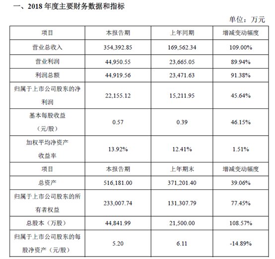 道氏技术的2018年度业绩报表显示,道氏技?018年实现营业收?5.44亿元,同比增?09.00%;实现归属于上市公司股东的净?2.15亿元,同比增?5.64%;归属于上市公司股东的所有者权益为23.30亿元,同比增?7.45%、/p>