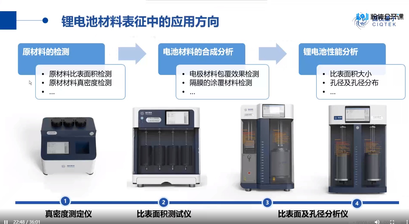 会上,长沙理工大学副教授李灵均、北京国仪精测技术有限公司应用工程师王华强、河北工业大学教授梁广川先后作《锂离子电池高镍正极材料的基础研究及改性策略》《气体吸附技术在锂电材料表征中的应用》《磷酸铁锂粉体材料的特性及加工性能》专题报告、/p>