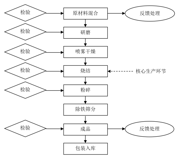 喷雾干燥环节:加热脱除浆料中的液相成分使浆料分散成为粉料,所用主要设备为离心喷雾干燥机、br/>