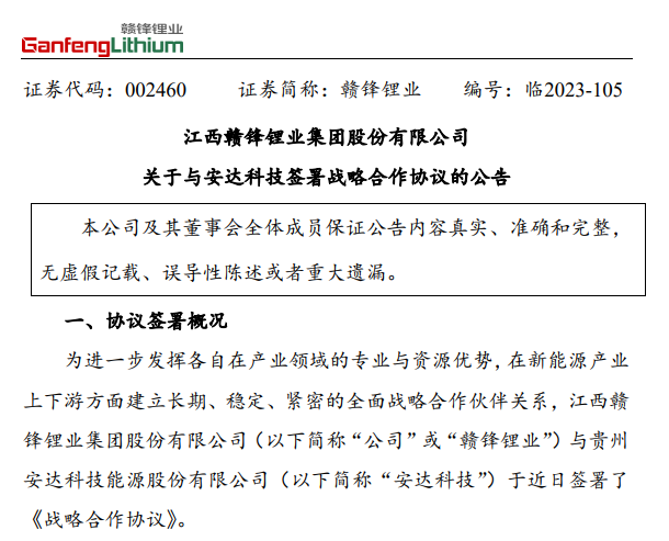 参考来源:赣锋锂业 《关于与安达科技签署战略合作协议的公告》、证券时报等
