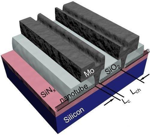 Doherty对于IBM的“焊接”技术印象深刻,认为这将为IBM带来竞争优势。其方式是在碳纳米管自对准于晶体管通道以前,以钼涂布碳纳米管两端。然后加热整个组装至华氐1,562?850℃而完成“焊接”过程,从而熔融钼并转化成为碳化物——一种可制作出优质埃级触点的导体