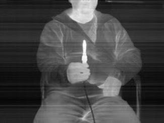 我们可以看到两张黑白的图,这里面一个人拿着一个电烙铁,电烙铁发出的光温度很高,大概三四百度。这是一个中红外的波段,人体发出的是远红外的波段、/p>