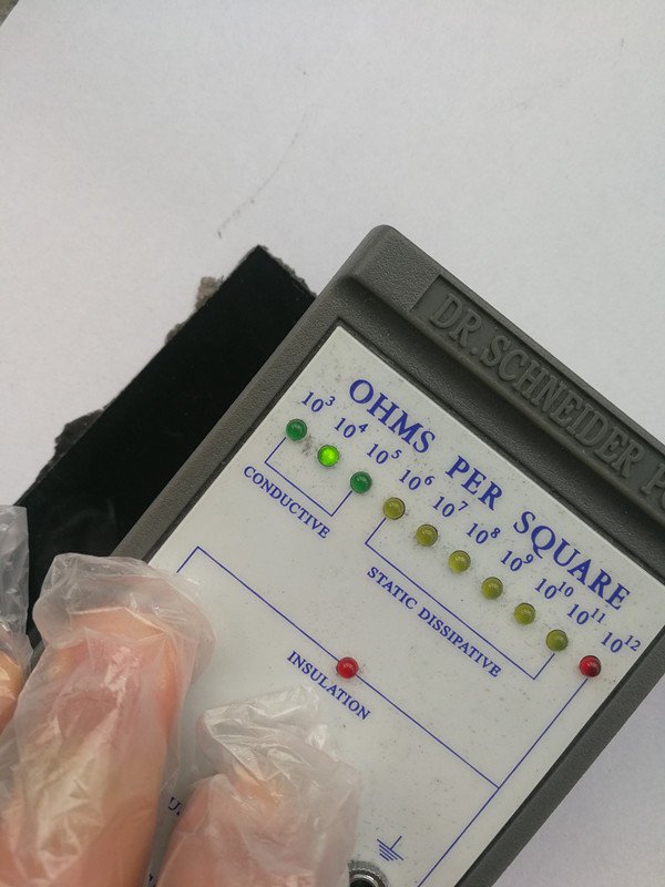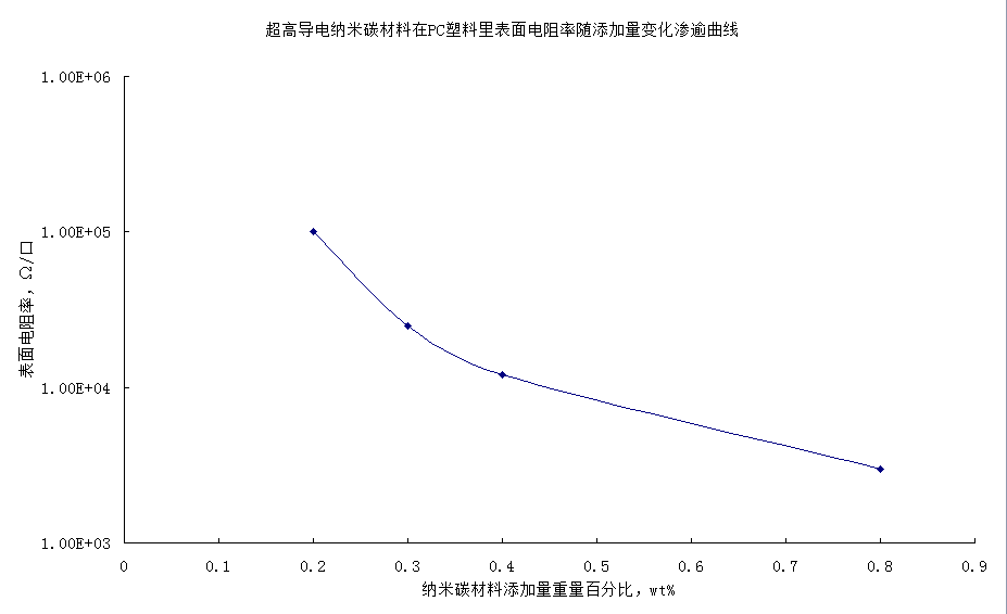 (超高导电纳米碳材料填充PC塑料表面电阻率数据曲线,1mm厚度PC测试片)
