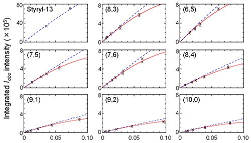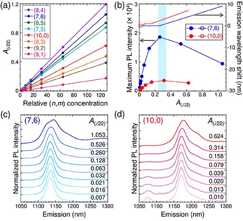 ?:不同手性碳纳米管荧光光谱积分强度的浓度依存性、/p>