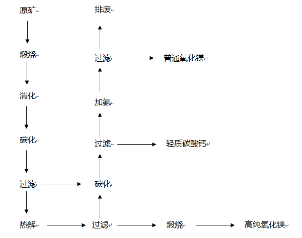 白云石煅烧碳化法制备高纯氧化镁与菱镁矿煅烧碳化法步骤基本相同,主要包括煅烧、消化、碳化、热解和煅烧等五个步骤。其具体过程如下9/p>