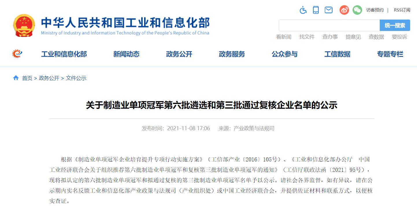 “国家制造业单项冠军示范企业”被业内誉为“制造业皇冠上的明珠”,是指长期专注于制造业某些特定细分产品市场,技术和工艺国际领先,单项产品市场占有率位居全球前列的企业、/span>