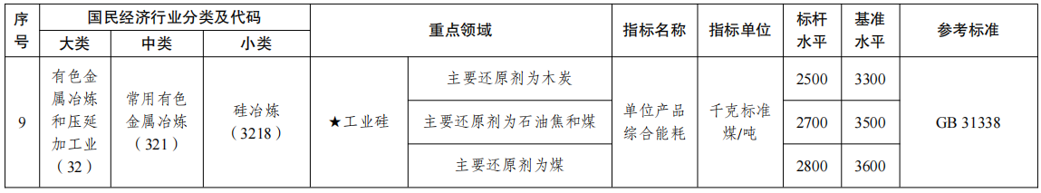 考虑产业发展情况,《能效水?023年版》中有色金属行业新增工业硅的相关能效指标,主要有以下几方面原因、/p>