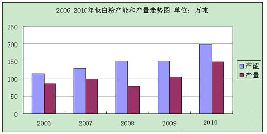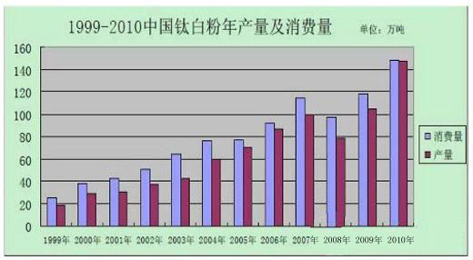 全世界总共?0多家钛白粉生产企业,中国就有63家,占全世界总产能的31%?010年,中国钛白粉总产能为198.6万吨,总产量达?47.2万吨,同比增?9%。有分析机构预计2011年国内钛白粉的产量将达到174万吨,同比增?8%。中国已成为世界上最大的钛白粉生产国、消费国。这样的刺激下,是中国钛白粉项目的急剧扩张?010年,有统计的扩产企业达到63家,新增产能?4万吨。中国的钛白粉行业不仅面临着产能过剩的危机,而扩产的背后是企业普遍采用技术壁垒小的硫酸法生产,这也注定了与国外氯化法生产的钛白粉的差异