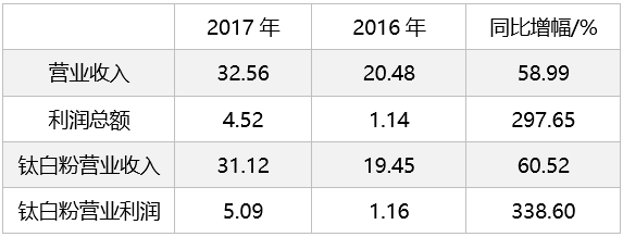 近年,国家供给侧改革各项工作有效推进,钛白粉产能得到有效控制,行业供给过剩的状况得到改善,产能集中度逐渐提升,产品结构得到优化 2016?017年钛白粉处于景气周期,产品价格呈现上涨之势,供应紧俏,库存大幅下降,年出口量保持着两位数的较高增速。随着钛白粉产业转型升级,中国正由钛白粉制造大国向强国迈进。下面我们来关注一下国内钛白粉上市公司的年报中都透漏了哪些信息、/p>