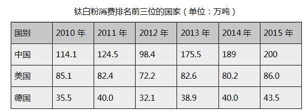 据预?019年中国钛白粉消费量将?85万吨。另外,2016年中国还替代美国成为世界上最大的钛白粉颜料出口国,不过需要注意的是,中国出口的钛白粉通常是中低档次产品,这也是国际钛白粉从业者眼中的中国市场目前市场特点、/p>