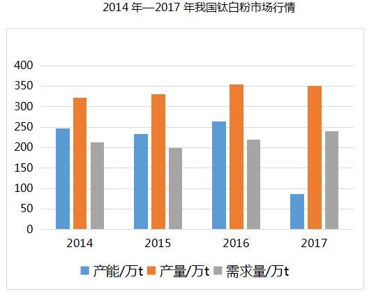 近几年来钛白粉行业遭遇了产能过剩打击,而中国显得尤为明显。中国目前已经成为世界第一大钛白粉生产国,但中国钛白粉产能严重过剩,产品供大于求,钛白粉原料供应严重依赖进口,产业发展与环境保护的矛盾日益尖锐,已经制约了中国钛白粉产业的发展?017年国内的环保督查也使得钛白粉行业淘汰掉大量的落后产能,不排除后期持续淘汰落后产能、/p>