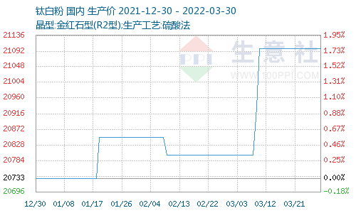 本月国内钛白粉市场价格继续维持上涨态势。国际钛白粉企业泛能拓、康诺斯等发函宣布将?/span>4朇/span>1日上调钛白粉价格,受此消息影响,3月第二周国内龙企龙佰集团钛白粉企业的涨价函,随后攀枝花钛海科技、江苏镇钛、中核钛白、山东东佳、济南裕兴、广西西陇等多家企业发函上调钛白粉价格。然进入下半月,受到疫情影响,部分地区运输受阻,钛白粉库存开始增加。加之下游需求清淡,原料高位,部分企业开始减产,钛白粉市场上涨乏力,后势上涨动力减弱,价格或将保持高位震荡下调态势、/span>