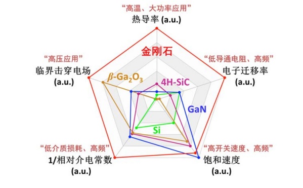金刚石相较于其他常见半导体材料的特性优劾/p>