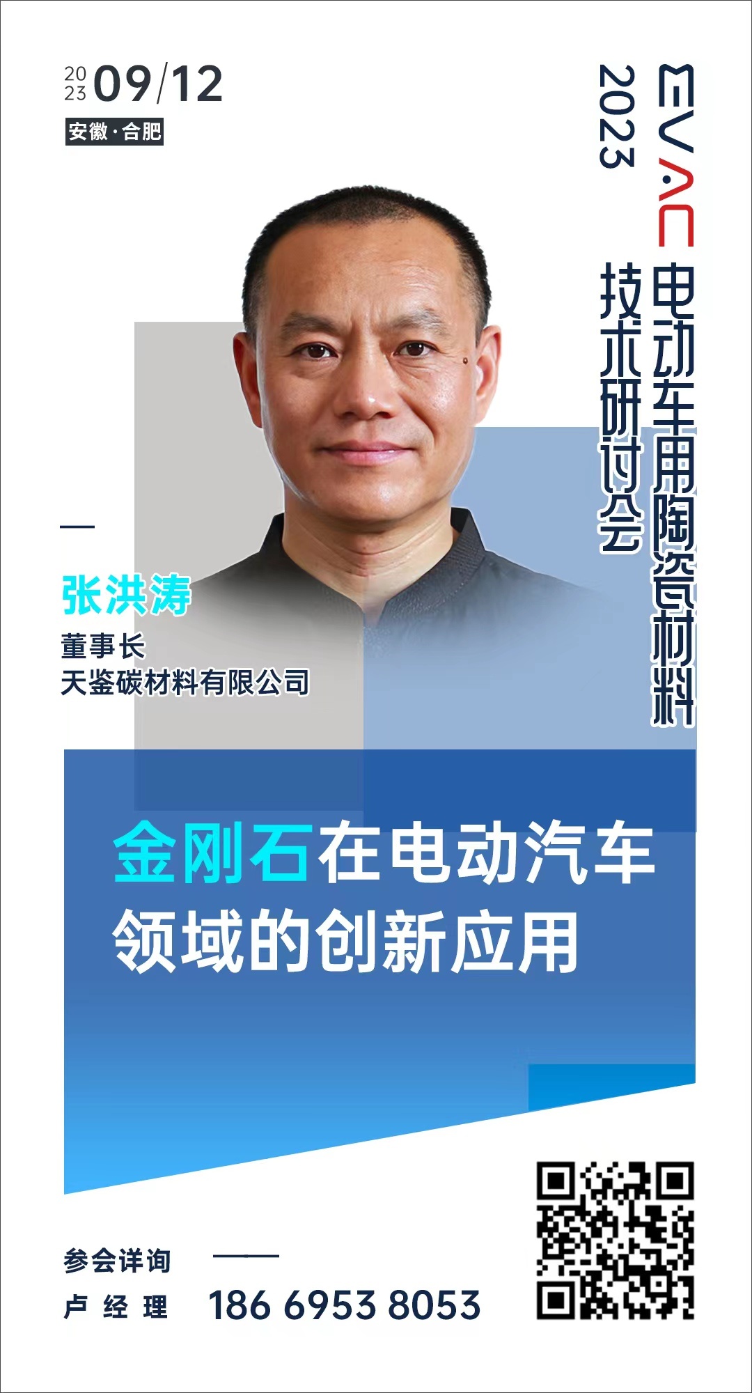 总之,金刚石在新能源汽车产业的应用前景广阔,随着相关技术的不断发展,其潜力将得到进一步的释放。那么,金刚石作为具有独特物理化学特性的新型材料,在新能源汽车领域究竟有何助力?其发展前景到底如何?2023??2?/strong>+span style="color: rgb(192, 0, 0);">中国粉体罐/strong>?span style="color: rgb(192, 0, 0);">合肥举办‛strong>第一届电动车用陶瓷材料技术研讨会” 天鉴碳材料有限公司张洪涛董事长将带来题为〉strong>金刚石在电动汽车领域的创新应?/strong>》的报告,届时,张洪涛董事长将为大家一一解答,欢迎报名参会、/p>