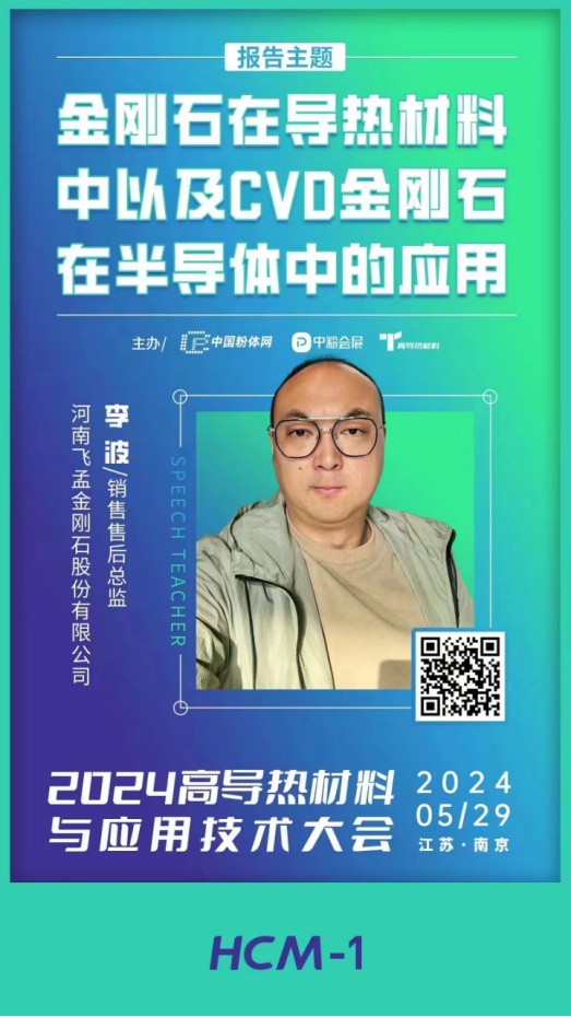 5?9?/strong>+strong>中国粉体罐/strong>将在南京举办2024高导热材料与应用技术大伙/strong>,组委会有幸邀请到河南飞孟金刚石股份有限公号/strong>的销售售后总监李波现场作题丹strong>《金刚石在导热材料中以及CVD金刚石在半导体中的应用《/strong>的报告。届时,李总将围绕“CVD金刚石的生产过程”、“CVD金刚石导热的应用场景”、“CVD金刚石的市场”等方面展开详细报告、/p>
