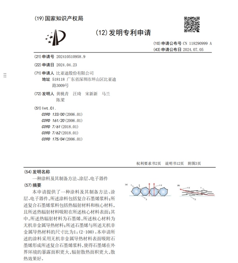 3.比亚迪申请一项石墨烯散热涂料相关专利