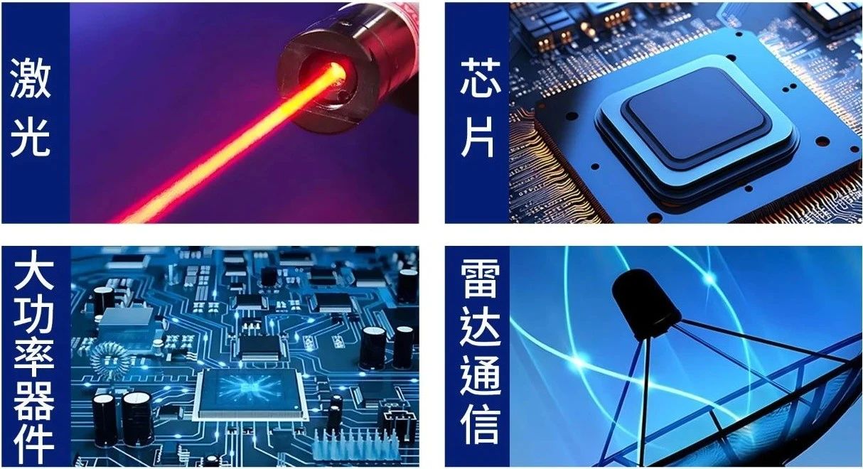 航空航天领域:卫星电子设备长期处于真空、高低温交变环境,传统散热材料性能受限。金刚石散热材料凭借耐高温、化学稳定特性,作为卫星核心控制器件的散热保障,维持设备稳定运行,提升卫星可靠性与在轨寿命;航天飞行器的机载雷达系统,借助金刚石出色散热能力,保障雷达长时间高功率工作,精准探测目标、/span>