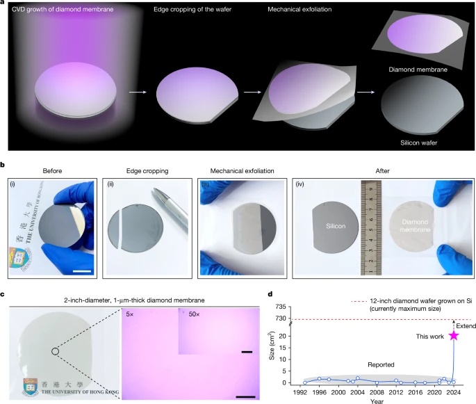 Jing, J., Sun, F., Wang, Z. et al. Scalable production of ultraflat and ultraflexible diamond membrane. Nature 636, 627?34 (2024).