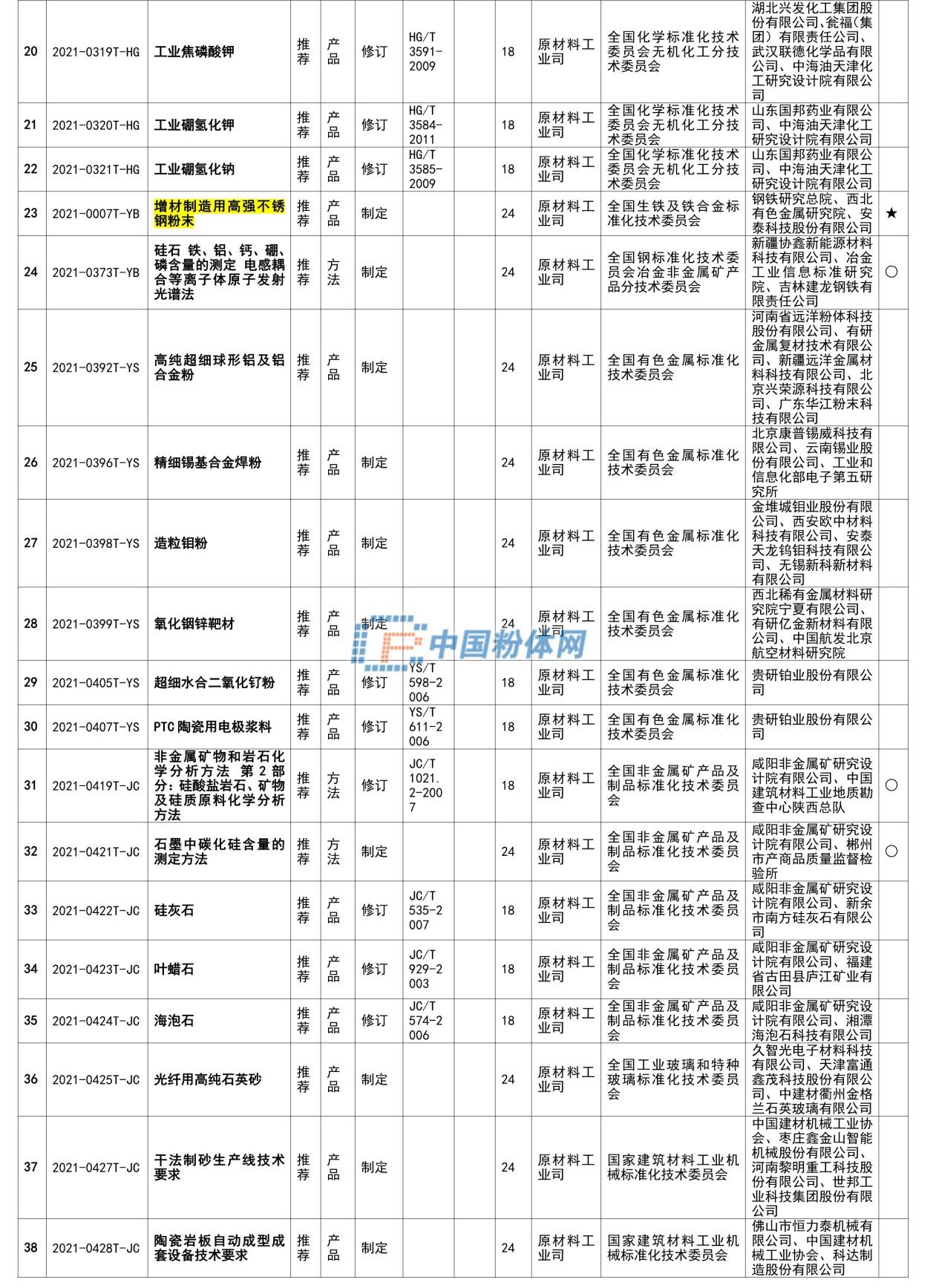 中国粉体网讯3?日,工业和信息化部办公厅发布了《关于印?021年第一批行业标准制修订和外文版项目计划的通知》。中国粉体网编辑从通知中的600余项行业标准中发现与粉体行业密切相关?0多项标准,其中包括了9br/>