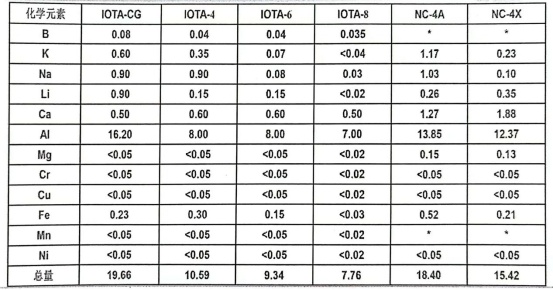 UNIMIN和TQC产高纯石英砂的杂质元素含量(ppm(/strong>
