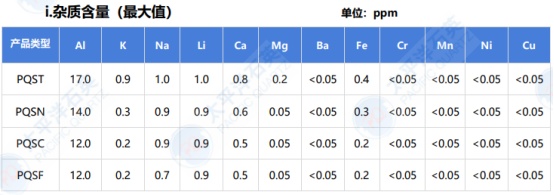 从外观上,应该是具有一定透明度的白色颗粒,无异色。从粒度上,40-160目。从纯度上,SiO2含量高于99.99%。Fe、Mn、Cr、Ni、Cu、Mg、Ca、Al、Na、Li、K、B、Ti杂质元素总含量小?2ppm,其中碱金属(K、Na、Li)分别小?ppm、/p>