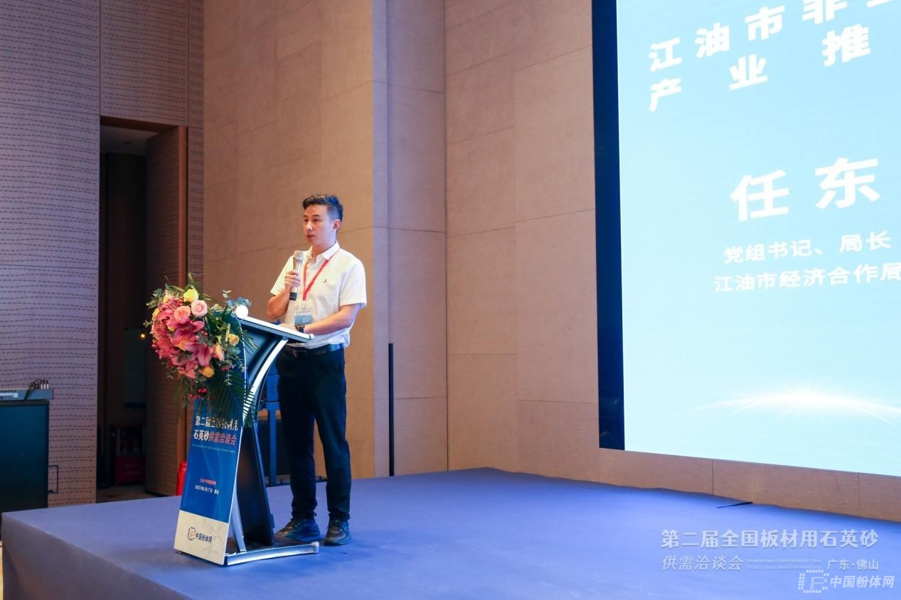 四川江油经济合作局党组书记/局长任东介绍了江油当地的文化底蕴、基础设施、交通优势,并分析了当地石英资源的优势,以及企业来江油建厂的便利条件和优惠政策、/span>