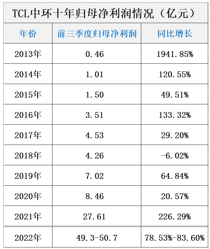 中国粉体网讯近日,TCL中环发布业绩预告?022 年前三季度预计实现归属于上市公司股东的净利润49.3亿元?0.7亿元,同比增 78.53%?3.60%,再创史上最高盈利规模。?022年TCL中环大概率将连续七年刷新年度盈利记录、br/>