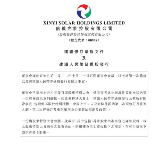 全球最大的光伏玻璃制造商信义光能近日宣布,将发行不少?.89亿股股份于深交所上市(目前尚在筹备阶段)。该公司称,在两个资本市场中估值较高的一个市场筹集资金,可减少对股东之摊薄效应。公司表示,我国政府对可持续发展推行的“碳达峰、碳中和”策略,让光伏玻璃行业得以快速增长及扩张。公司认为公司的业务目标与这些政策举措相符。通过A股上市,公司的内在价值可扩至最大,估值也可与其他在深圳创业板上市的太阳能公司进行比较及评估。深交所上市公司的身份也让信义光能可以更直接参与可再生能源的国家策略项目,并扩展国内产能及企业形象、br/>