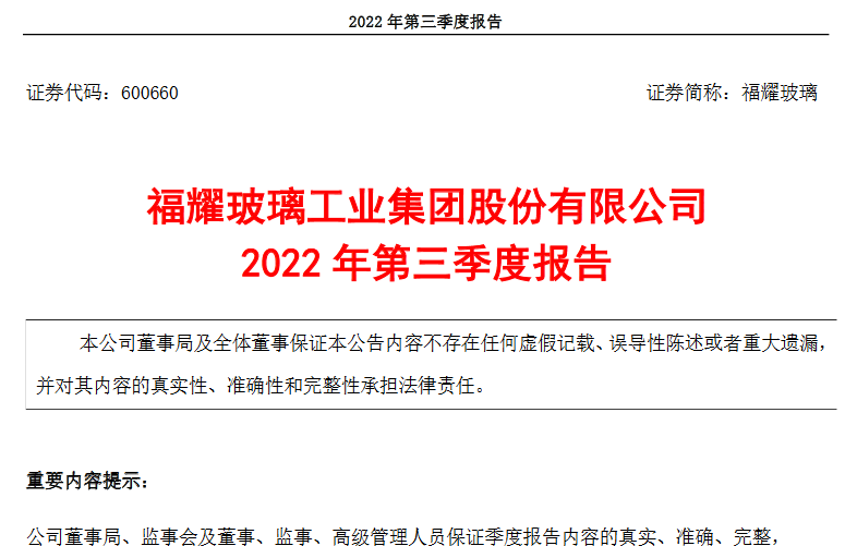 近日,福耀玻璃发布2022年第三季度业绩报告显示,公司前三季度实现营收204.40亿元,同比增?9.16%,实现归母净利润39.01亿元,同比增?0.28%;其中第三季度实现营?5.36亿元,同比增?4.34%;实现归母净利润15.19亿元,同比增?3.77%。业内人士认为,公司作为全球汽车玻璃龙头,技术研发优势明显,受益汽车行业特别是汽车电动智能化的发展,单车玻璃价值提升,天幕玻璃等高附加值产品渗透加快、br/>